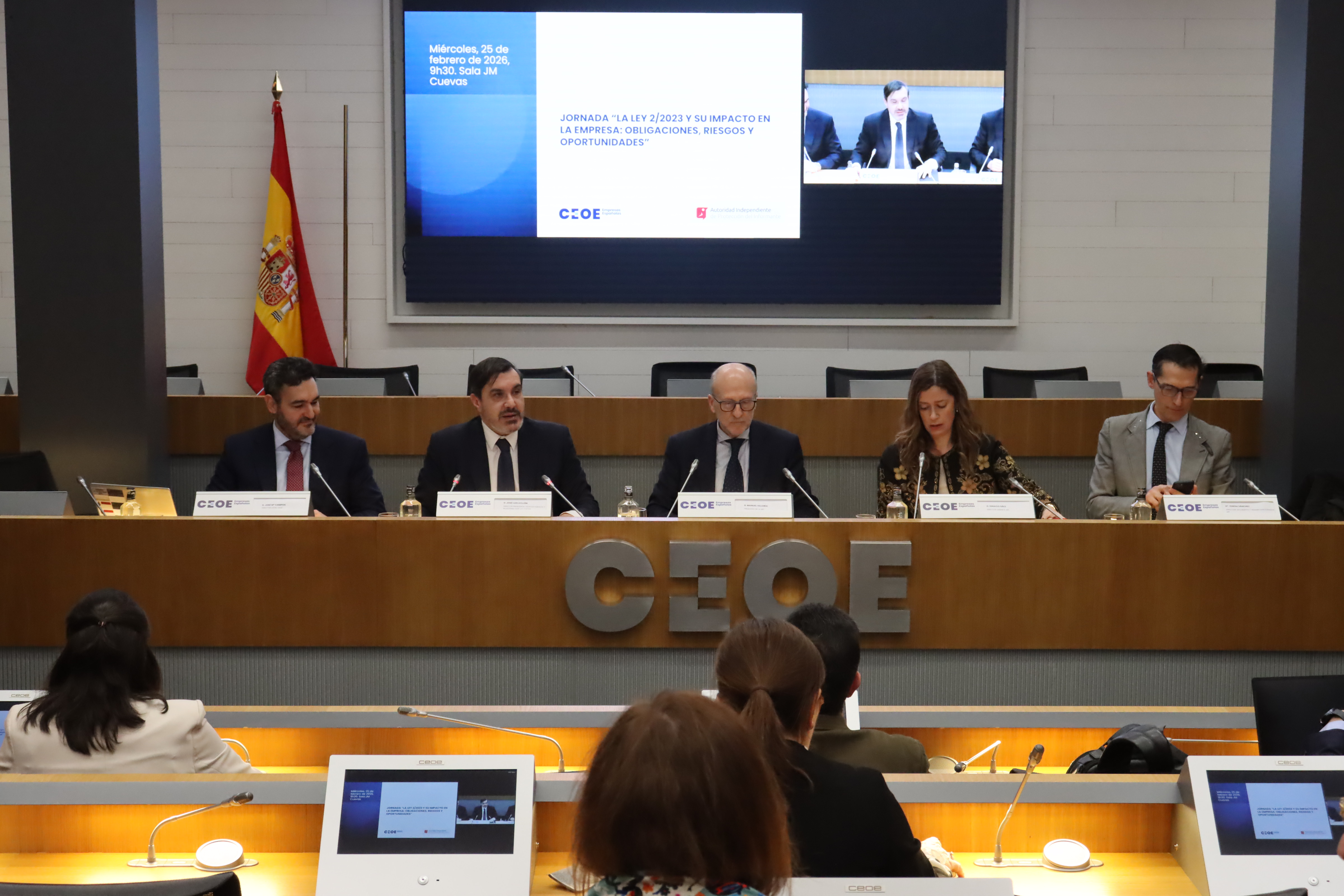 El Presidente de la AIPI, Manuel Villoria, participó ayer en una jornada organizada por la CEOE en la que se abordó “La Ley 2/2023 y su impacto en la empresa: obligaciones, riesgos y oportunidades”. Asistieron al evento también la Directora del Departamento de Seguimiento y Régimen Sancionador, Teresa de Jesús Sánchez, y el director del Gabinete de la AIPI, Ignacio Sáez, que comentaron los aspectos más destacados de la norma y contestaron numerosas preguntas de los asistentes respecto a las obligaciones que la Ley impone a las empresas y, en especial, cuestiones relacionadas con la comunicación del Responsable del Sistema Interno de Información (RSII).